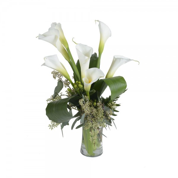 Un bouquet composé uniquement de magnifiques callas et de verdure luxuriante un classique à offrir parfait pour toutes les occasions!
