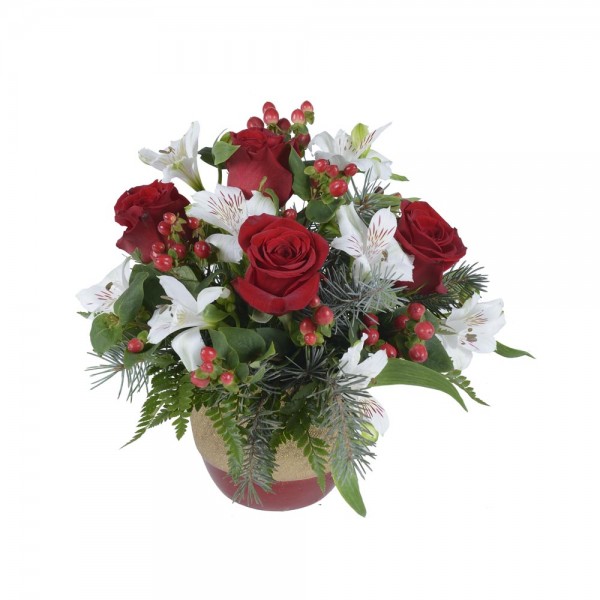Un très joli bouquet aux couleurs des fêtes pour agrémenter votre table.