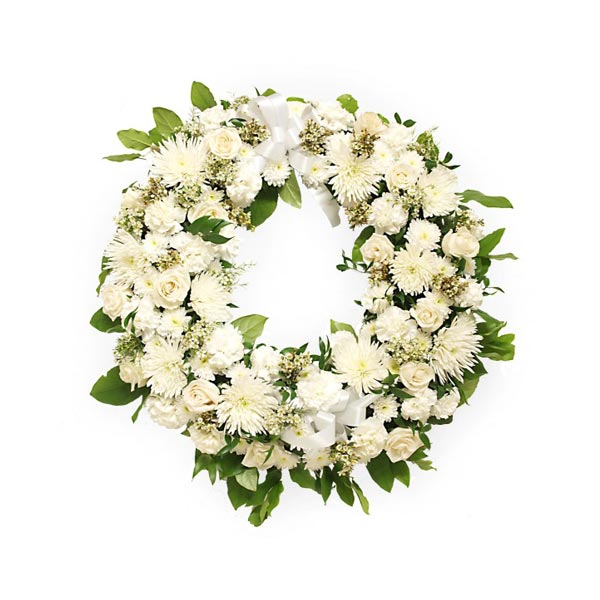 En guise de sincère sympathie vous pouvez offrir cette magnifique couronne conçue de fleur blanche uniquement. Elle apportera douceur et élégance à la cérémonie d'adieu.